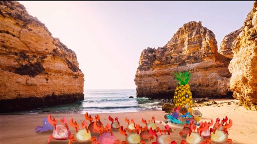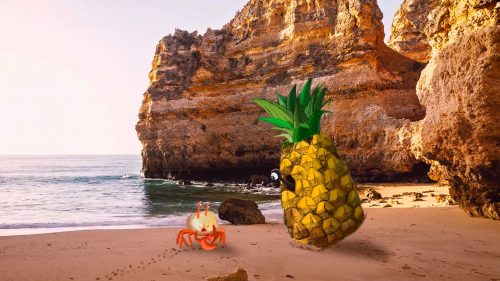 What can happen if crab will find pineapple on the beach?